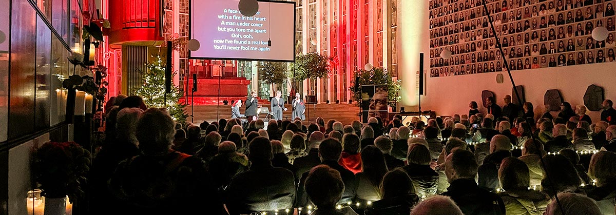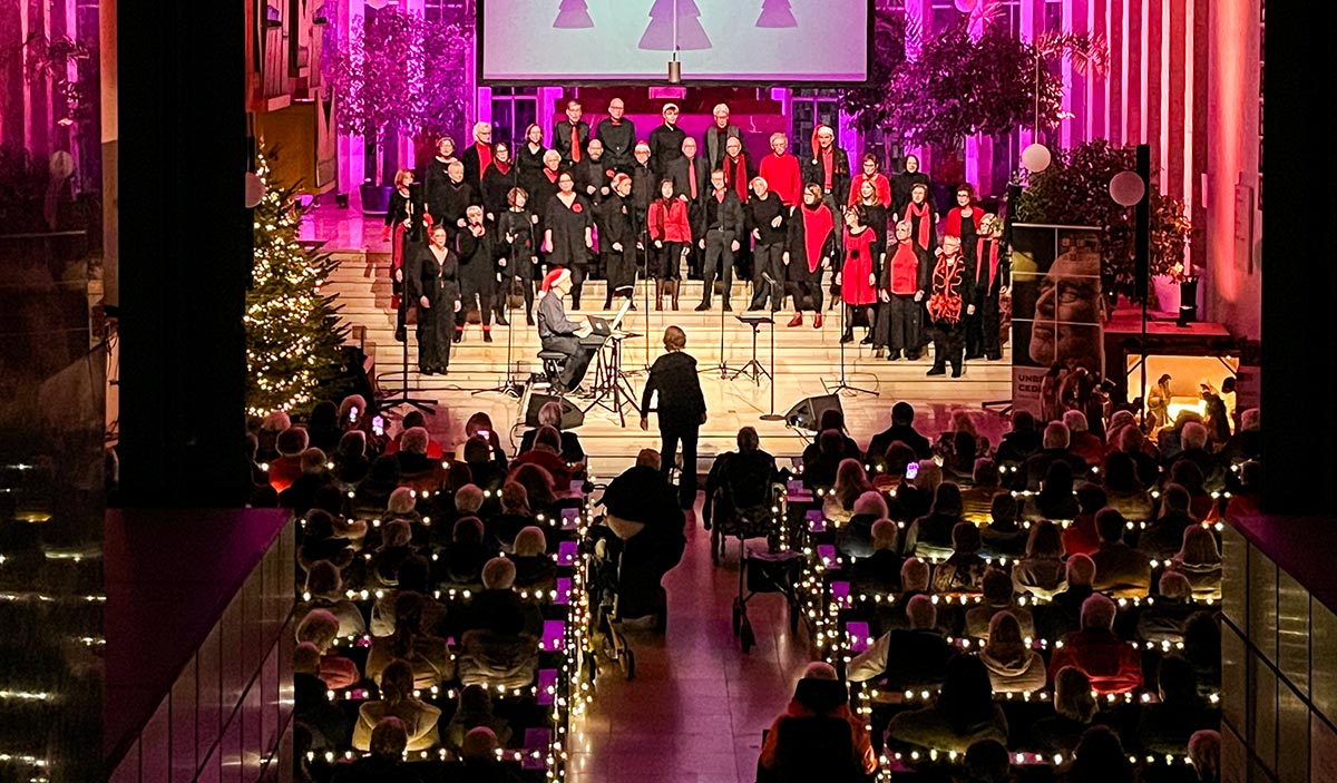 Der Jazzchor Mönchengladbach brachte am zweiten Advent gut 300 Besucher zum Singen und in weihnachtliche Stimmung im St. Kamillus Kolumbarium.